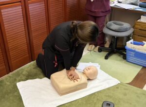 今回はハイフローセラピー機器の実物を用いた勉強会であり大変貴重な時間となりました。機器の設置や使用方法、管理方法も勉強させていただけ、実際に鼻カニューレを装着し、空気と酸素の混合ガスの吸入体験までさせていただきました。